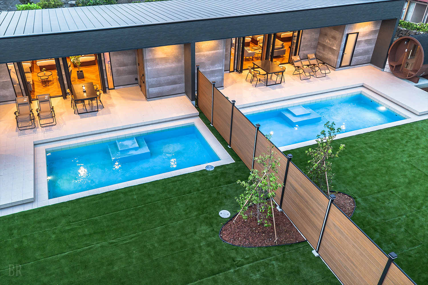各棟に設置されたプライベートプールは、ほかのお客様を気にすることなく、ご家族だけでゆっくりとお楽しみいただける特別な空間です。